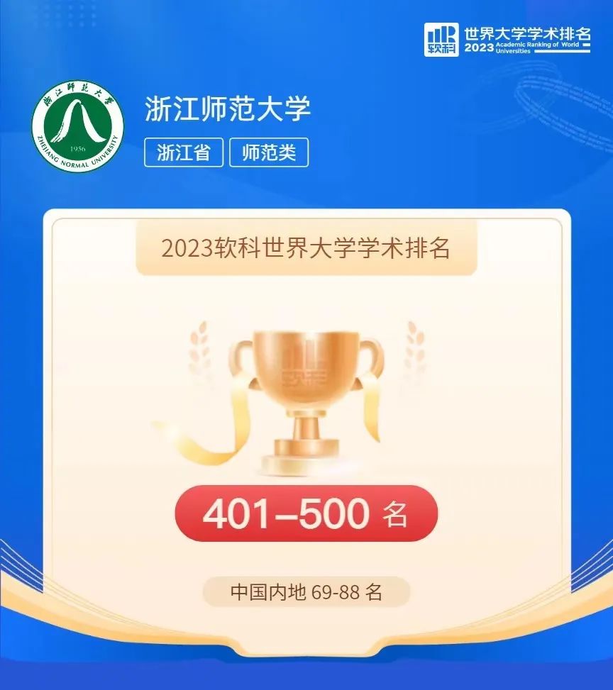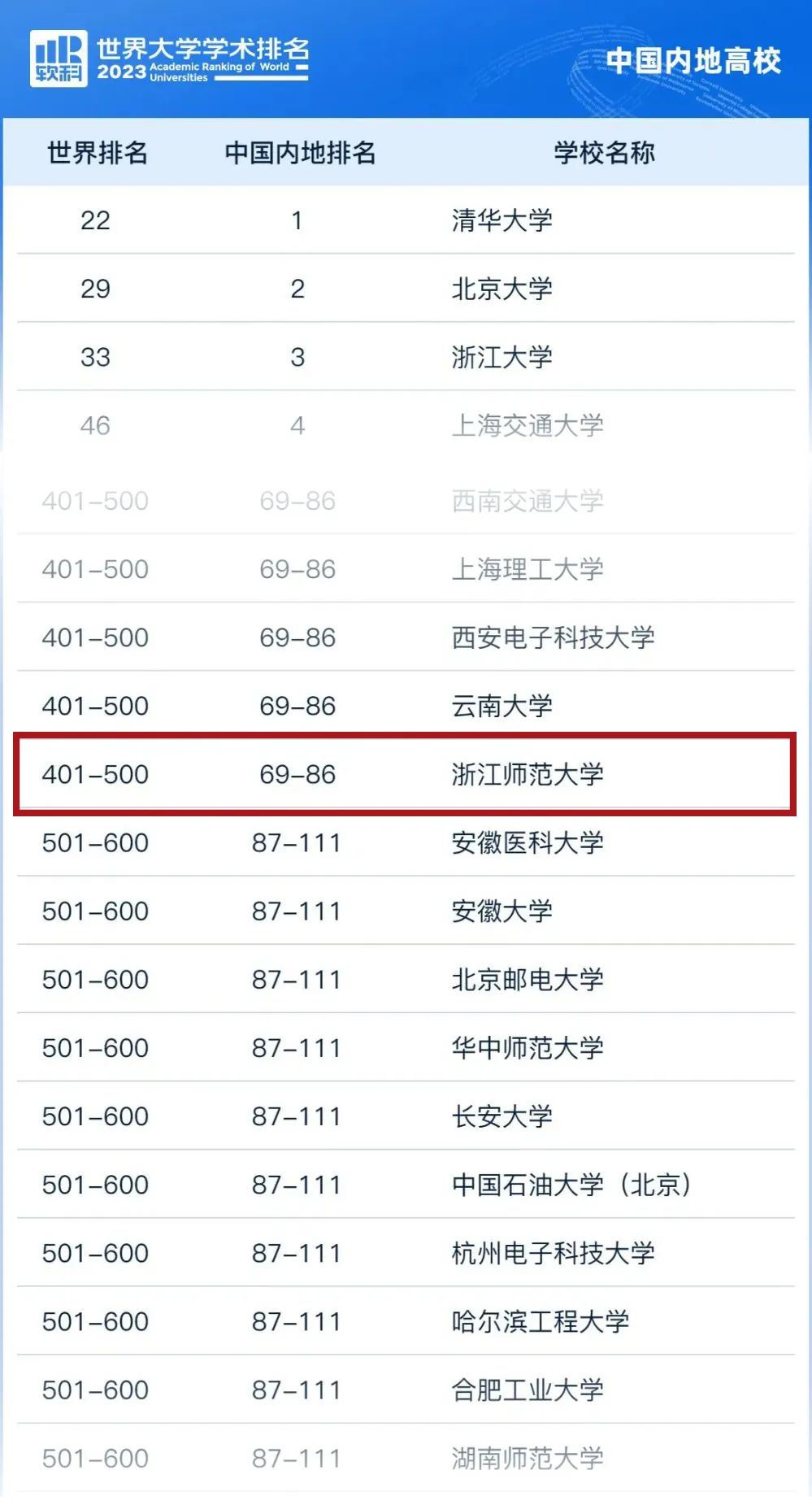 软科世界大学学术排名展示了全球领先的1000所研究型大学,今年中国内地共有191所高校上榜,较去年增加28所。相比2022年,浙江师范大学的世界排名上升81名,中国排名上升2名。