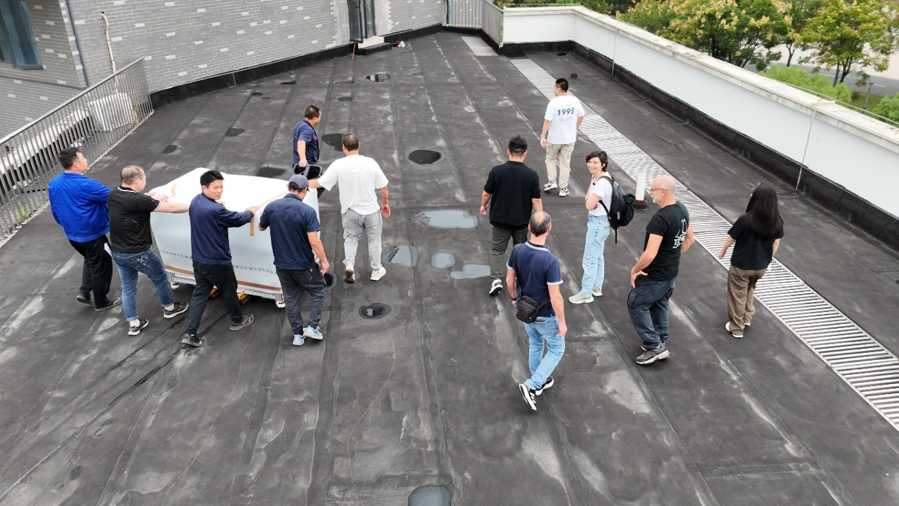 SCAR(饱和吸收腔衰荡光谱仪)搬运的核心限制在于设备倾斜角必须小于10°,为此,研究中心专门聘用了在AMS与光刻机等超精密设备搬运方面富有经验的货运团队。将设备搬运至4楼实验室时,由于设备尺寸发生了微调,无法带着包装进入电梯。在杭州校区管委会多部门的协助下,通过反复比对多种方案后,团队选择了在最开始就拆掉包装,裸机加延长板的方式,使用人力一点一点搬运。
