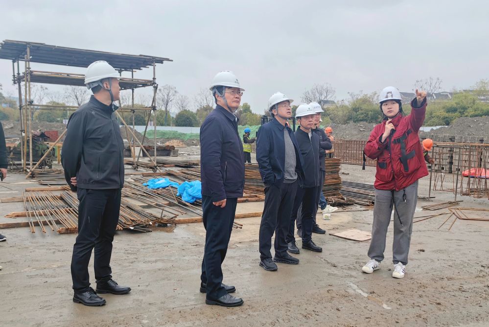 仪式结束后,蒋云良、邱利民带领基础设施提质工程专班成员对在建的杭州校区学生宿舍建设项目开展现场检查,就工程的安全、质量、进度等工作进行实地督查与指导。